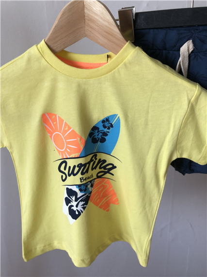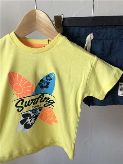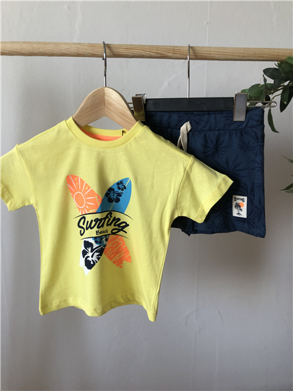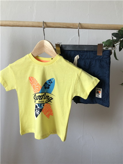 2'li sarı renkte surf baskı detaylı yumuşacık pamuklu kumaştan 2'li takım.
