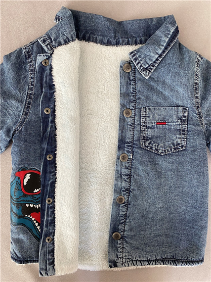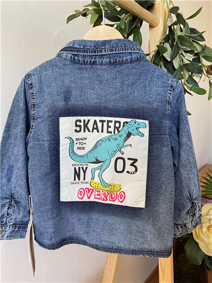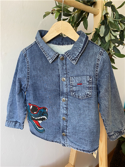 Baskılı, sırtında dinozor aplikeli, içi , eskitme tarzda kot gömlek ceket. Türkiyede üretilmiştir. Lütfen yıkama talimatların uygun yıkayınız. Maksimum 30 derecede yıkayınız. Düşük ısıda ütüleyiniz.